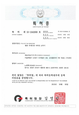 자외선소독기 특허증