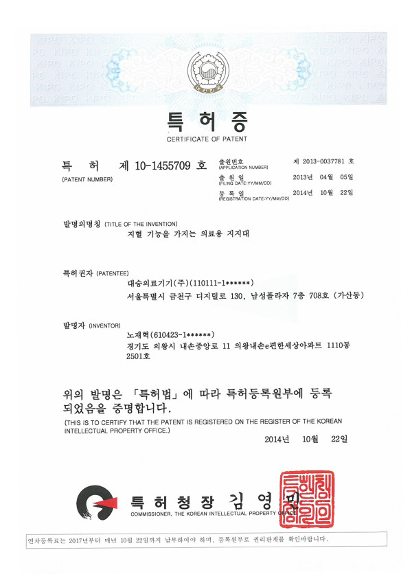 지혈효과를가진 의료용 지지대 특허증 페이지 정보 작성자 DAISEUNG 댓글 0건 조회 282회 작성일 22-04-12 15:07 목록 본문 지혈효과를가진 의료용 지지대 특허증 이전글자외선소독기 특허증 22.04.12 댓글 0 댓글목록 등록된 댓글이 없습니다.