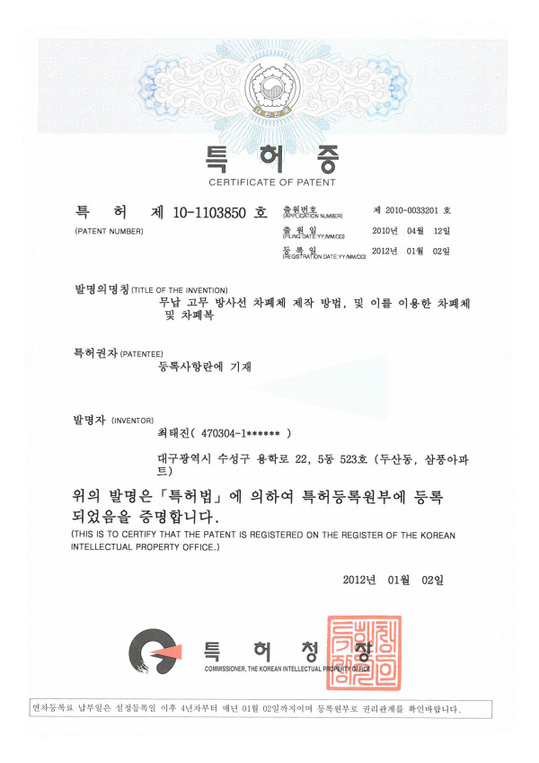 무납고무방사선 특허증 페이지 정보 작성자 DAISEUNG 댓글 0건 조회 232회 작성일 22-04-12 15:37 목록 본문 무납고무방사선 특허증 이전글고주파열처리 22.04.12 다음글방사선 폐기물 저장장치 특허증 22.04.12 댓글 0 댓글목록 등록된 댓글이 없습니다.