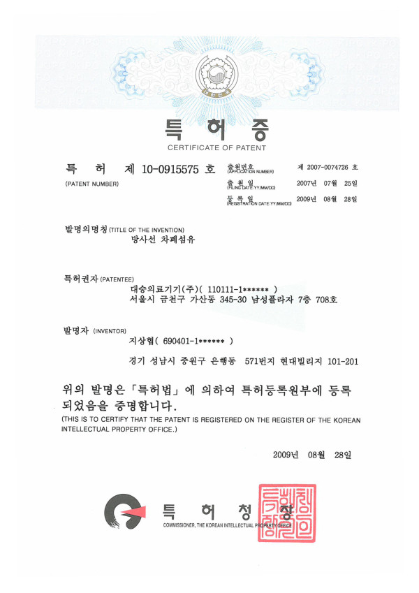 방사선 차폐섬류 특허증 페이지 정보 작성자 DAISEUNG 댓글 0건 조회 251회 작성일 22-04-12 15:37 목록 본문 방사선 차폐섬류 특허증 이전글방사선 폐기물 저장장치 특허증 22.04.12 다음글설진기 특허증 22.04.12 댓글 0 댓글목록 등록된 댓글이 없습니다.