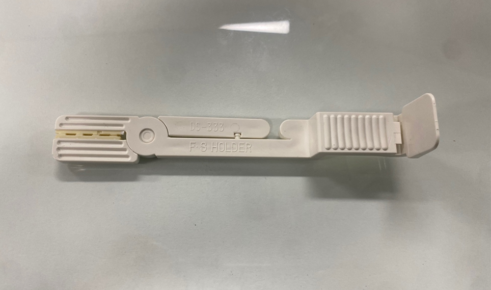 목록 본문 X-ray File & Sensor Holder 엑스레이 필름홀더 (DS-333) 치과 방사선 촬영시 환자의 입안을 쉽고 간편하게 검사가 가능하며, 환자는 위생적이고 불편함 없이 검사를 받을 수 있게 하는 목적으로 사용필름/센서 끝을 가로 또는 세로 방향으로 고정시킨 후 환자의 입안으로 삽입하여 검사하고자 하는 치아 부위에 엑스선 관구를 위치시킨후 X-ray를 조사한다.홀더에 필름을 고정시킨 후 환자가 물고 있는 것 만으로 촬영부위가 고정되는 효과가 있음전치, 구치, 상악, 하악 겸용Size : W153 x D20 x D23 (H40) mmPack : 5 ea /Box 이전글Cassette Holder (카세트홀더) 24.04.04 다음글납 자 (PB Ruller) 24.03.12 댓글 0 댓글목록 등록된 댓글이 없습니다.